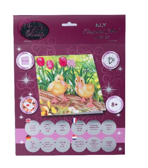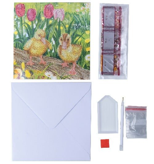 The Craft Buddy 'Spring Chicks' Crystal Art® Card Kit captures the innocence of Spring in sparkling gems. In cutest pale yellow these chicks will bring cheer to your greeting. The 'partial crystal' kit allows the illustration to show through giving contrast and depth, and is blank for your own greeting. Why not include a matching 18cm x 18cm frame so your loved one can keep this as a really special memory?