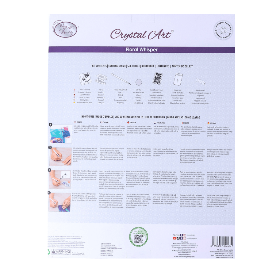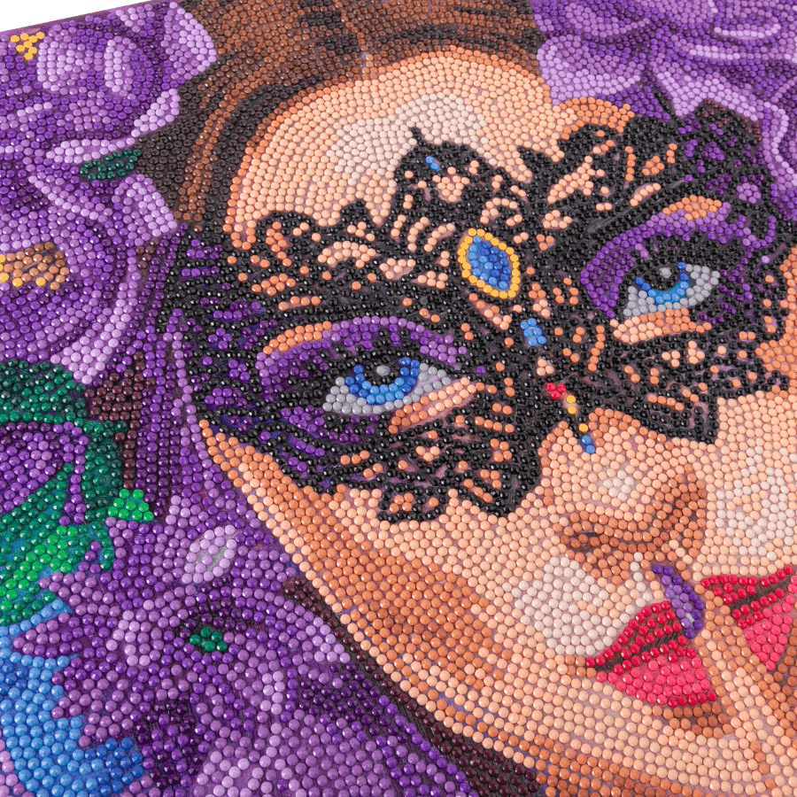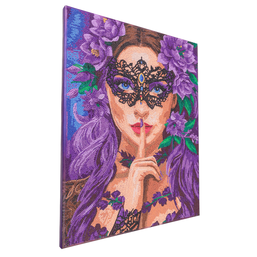 Create a dramatic piece of art for your 'boudoir' with this enchanting Craft Buddy ‘Floral Whisper’ Crystal Art® Canvas Kit. Perfect for fantasy art fans, this striking canvas at 40x50cm will give a wow factor to anywhere it is displayed. A gothic lady wearing an ornate mask is surrounded by violet flowers, and is keeping a secret! The ‘full crystal’ detail in this wonderful diamond art illustration means no part of this image is left out and will sparkle in its entirety.