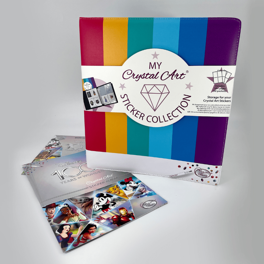 This great quality ring binder folder with pockets included is a colourful and protective way to store your Crystal Art® stickers, including any spare Disney 100 stickers. This is a handy storage solution, whether you have several duplicates that you still want to craft and enjoy, or you just want to create sparkling small projects without an accompanying sticker album.