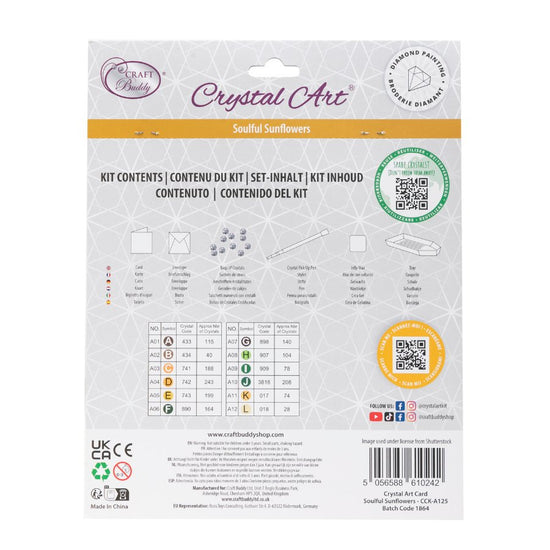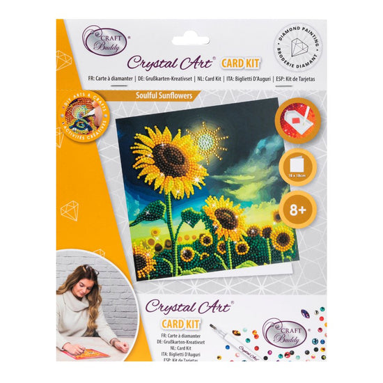 Illuminate anyone's special day with warmth, positivity... and sparkle! This cheerful 'Soulful Sunflower' Crystal Art® Card Kit from Craft Buddy blooms with life, featuring a sun-kissed field of sunflowers under a sparkling sun, each crystal reflecting the joy and energy that sunflowers are known for. Not just a card, but a crafty journey, this DIY kit lets you or your loved ones piece together a vibrant scene that's as radiant as it is heartfelt. Perfect for birthdays, thank-you's, or just to say 'You are my sunshine', it will bring a personal touch to any celebration.