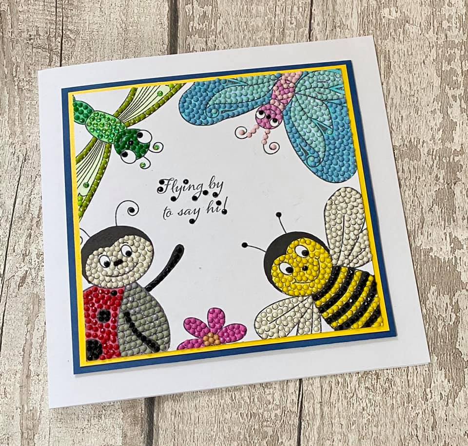 The stamped images contain small dots, perfectly placed for you to embellish with your left over Crystal Art gems, self adhesive gems, pearl or enamel drops, or simply colour for detail.