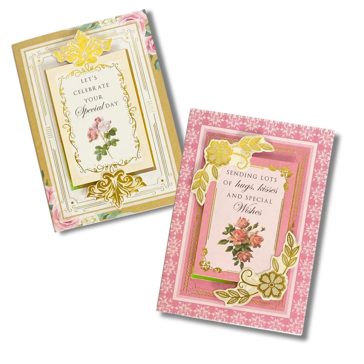- 2 x A4 Die cut and foiled floral and butterfly Embellishments (1 design x 2 of each) 250gsm