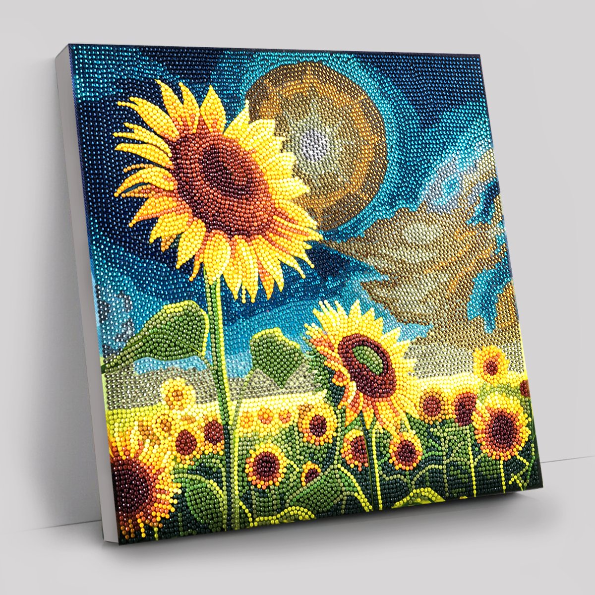 Whether you're a seasoned Crystal Art enthusiast or new to this captivating craft, our "Golden Sunflowers Blooms" canvas offers a delightful experience. Follow the numbered patterns and let your creativity soar as you bring the scene to life, one crystal at a time. The process is both calming and rewarding, allowing you to immerse yourself in the joy of creating a unique work of art.
