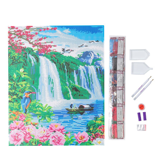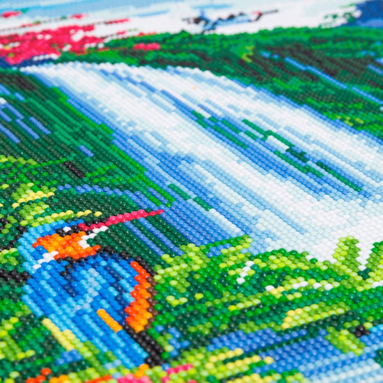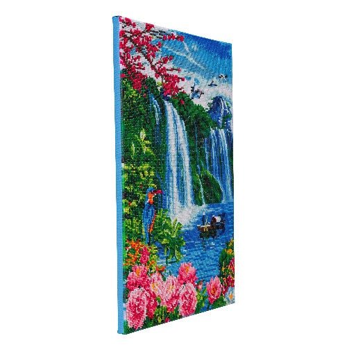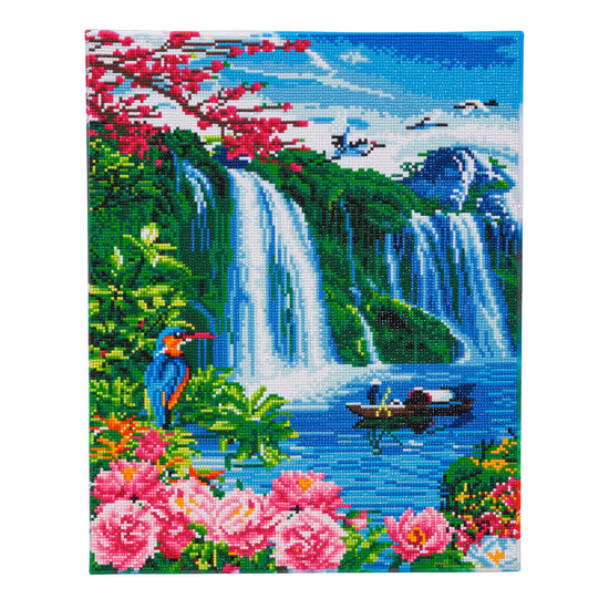 Enjoy the sparkle of a waterfall paradise in this Crystal Art® canvas