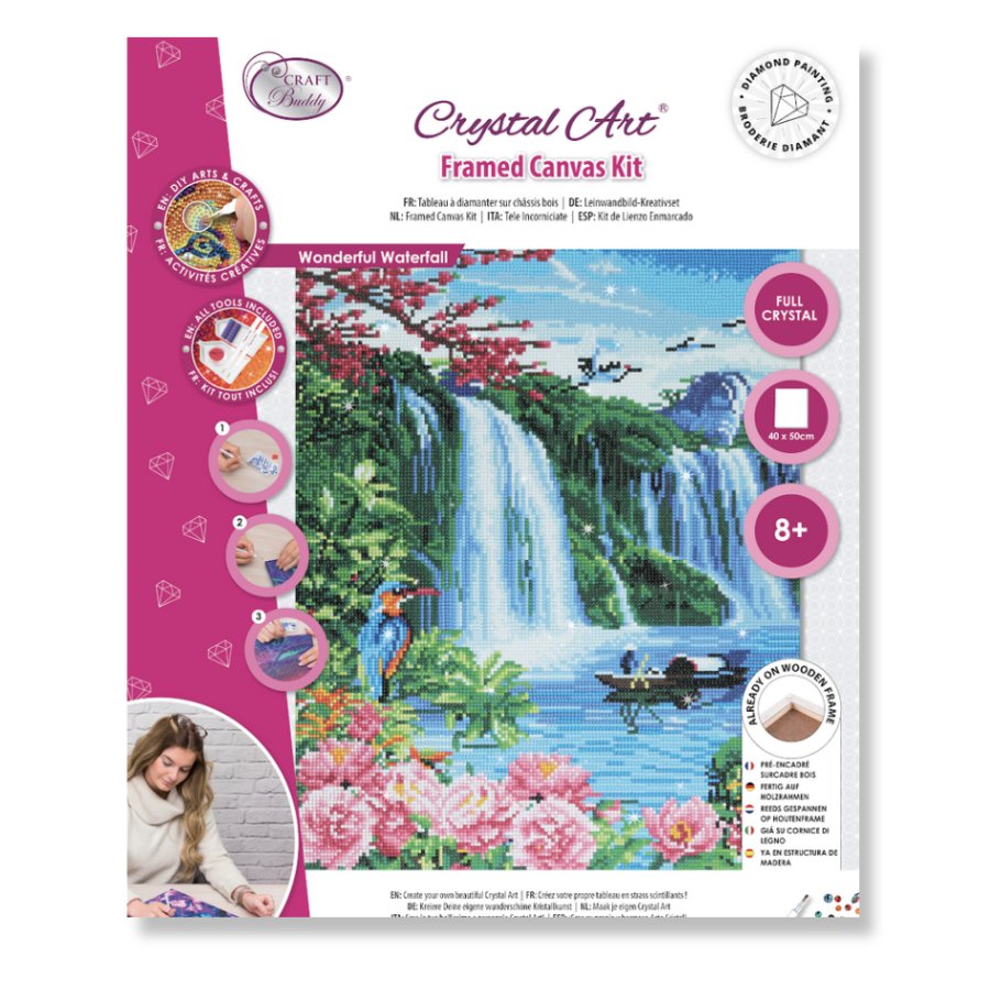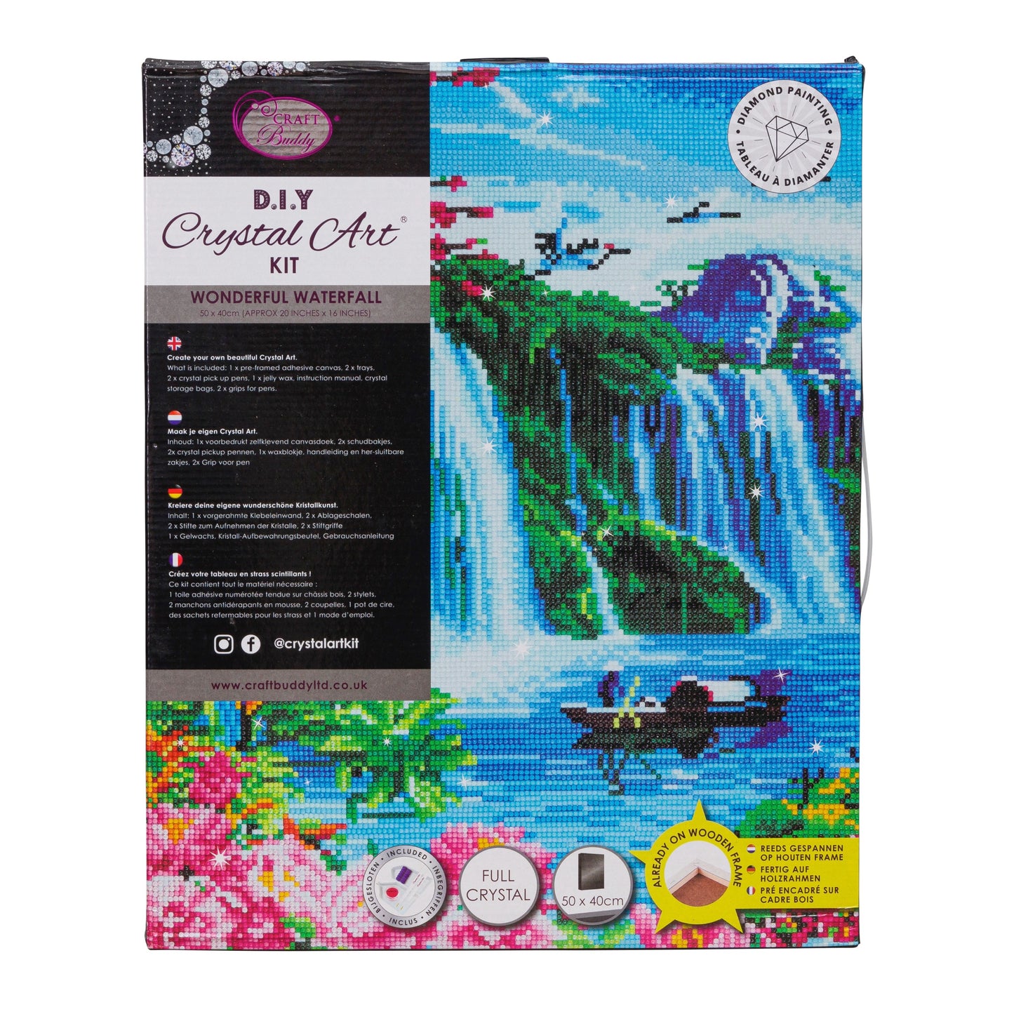 When it's cold and wet outside, you may dream of escaping to a tropical paradise, with cascading waterfalls and lush nature. Now you can make that a reality with the Craft Buddy ‘Wonderful Waterfall’ Crystal Art® Canvas Kit. With a multicoloured array of crystal gems, this large 40cm x 50cm canvas will give your hours of mindful crafting and create a breathtaking piece of art. The ‘full crystal’ detail in this wonderful diamond art illustration means no part of this image is left out and will sparkle in its entirety.
