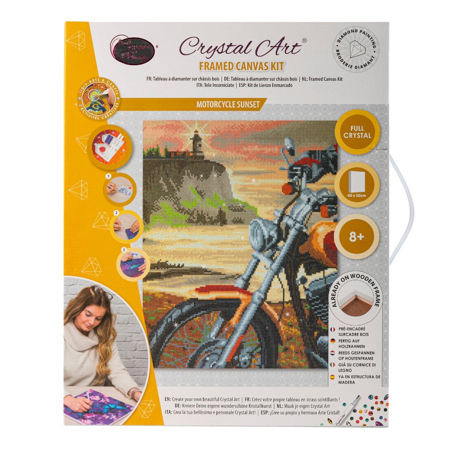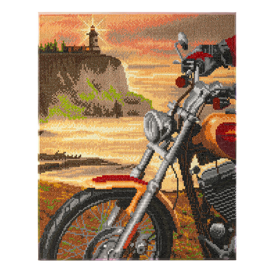 "Motorcycle Sunset" Crystal Art Canvas Kit 40cmx50cm