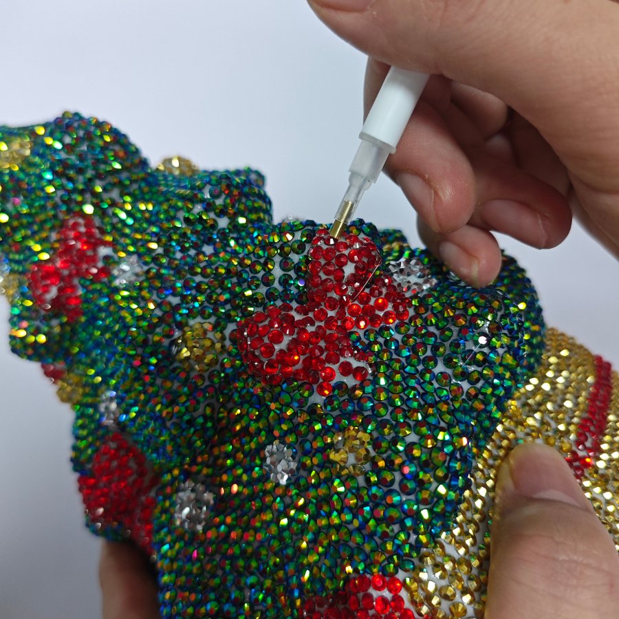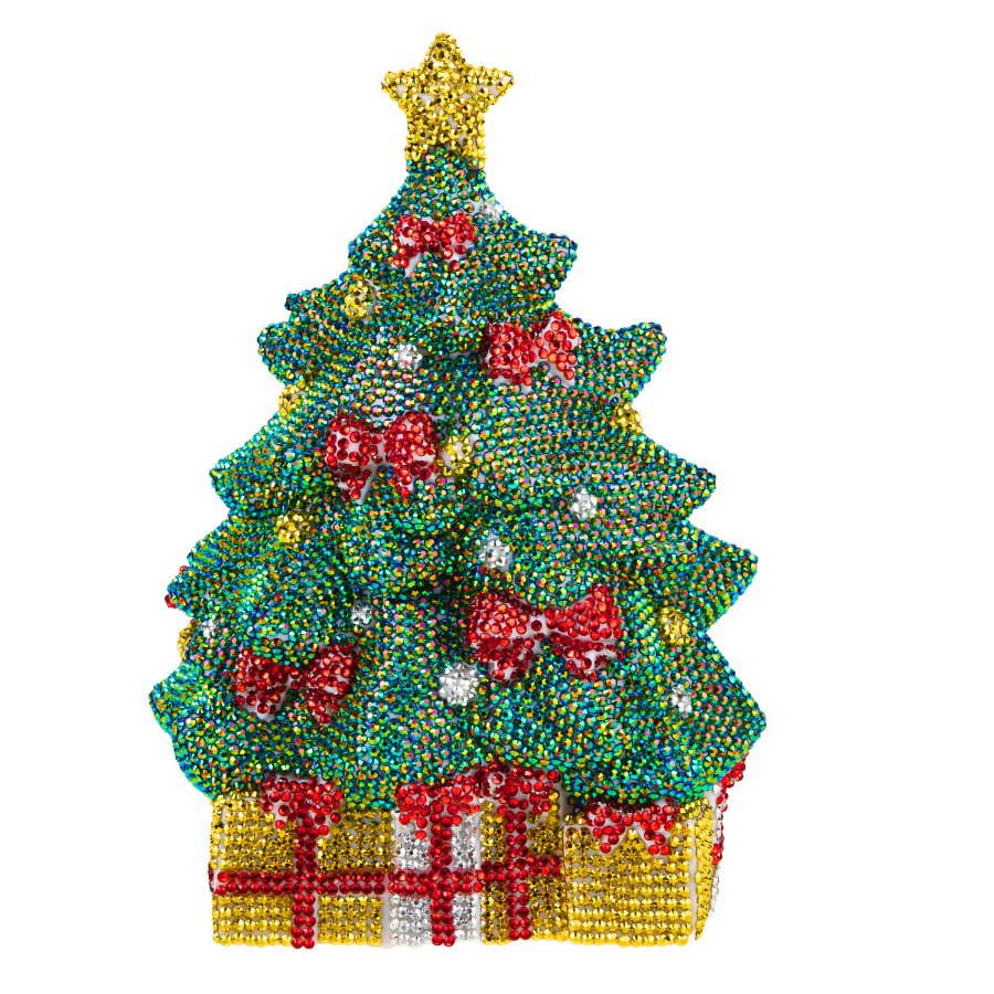Simply choose where to start, add a small amount of the glue and brush smoothy. Then, using the handy gem pick-up-tool, start adding your glistening crystals until you have covered the entire mould. This is a more traditional style of Crystal Art, without a template, so although it is clear which moulded part is a bow, a gift or tree, your creativity can go wild, especially if you have any spare drill gems from other kits. This is a festive treat of a kit for any age or level of crafter.