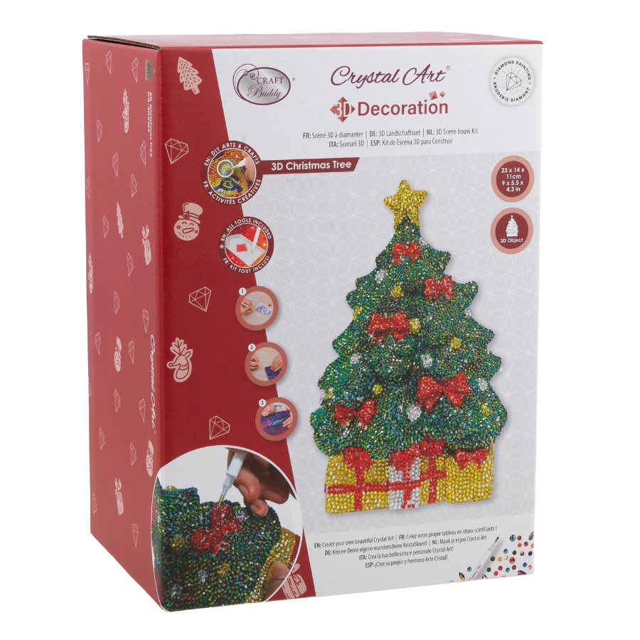Why not gather around the table as a family and make a seasonal decoration for the home? The Craft Buddy 'Christmas Tree' Crystal Art® Decoration Kit is a sparkling three dimensional feature for any table or display. Standing at 23cm, this blank tree mould is ready to adorn with crystal gems in festive red, green and gold.
