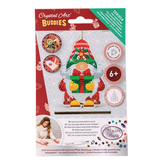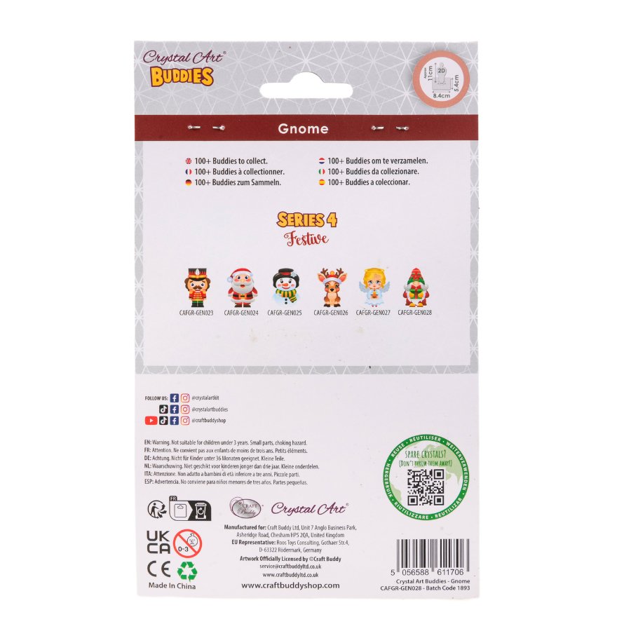 It is what you have been waiting for - the ‘Festive’ Series 4 of this popular craft kit! The Craft Buddy new range of their namesake ‘Buddies’ Crystal Art® Kit has a seasonal touch that will delight all the family. There are six to collect in this new range - Santa, Soldier, Reindeer, Angel, Snowman and this colourful ‘Gnome’. The mini MDF DIY Crystal Art® Kits contain all you need to create a little Buddy character that can either be hung from your tree, or placed in its stand for a table or desk.