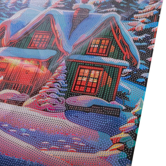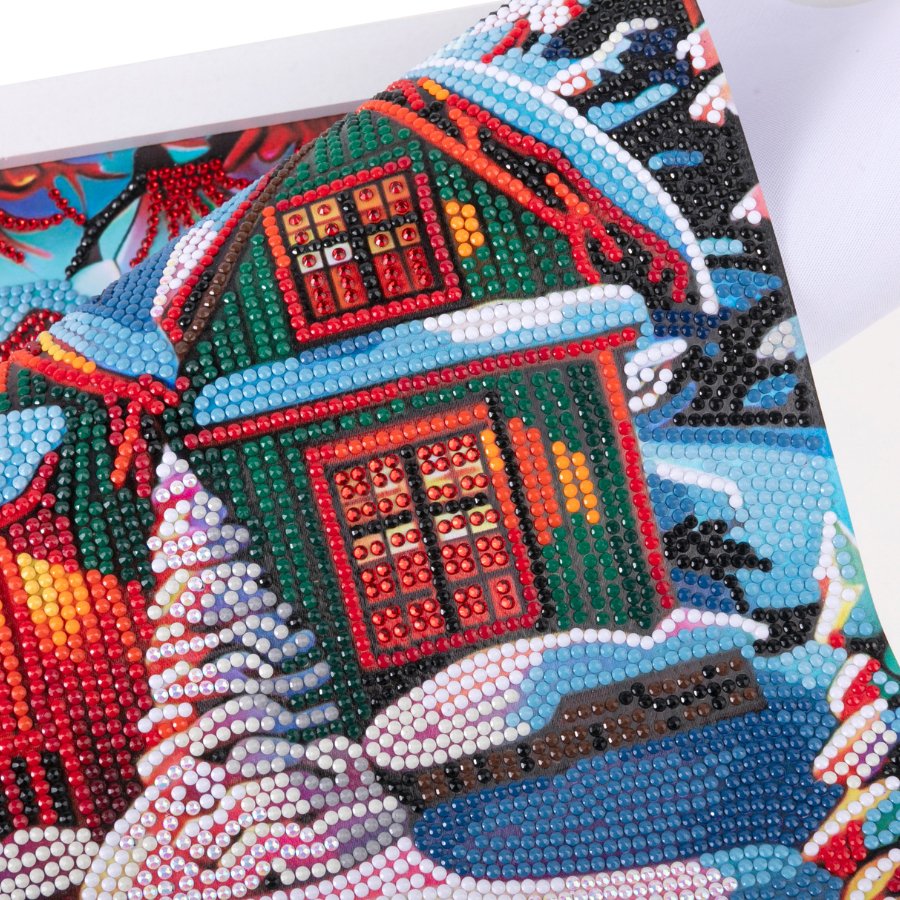 The design is ‘partial crystal’ which means some of the canvas shows through, to give texture and contrast. It is easy to complete with a numbered adhesive template and all the tools you need supplied. Simply lift up the coloured resin gems from the handy tray and place them on the corresponding numbered dots. The canvas is flexible and soft to complete comfortably on your lap, but once the design has the weight of the full crystals, it hangs beautifully flat and straight. The technique, also known as 'diamond painting' or 'diamond art' is a relaxing and therapeutic craft activity, suitable for all ages. A festive scroll with a colourful 'wow' factor!
