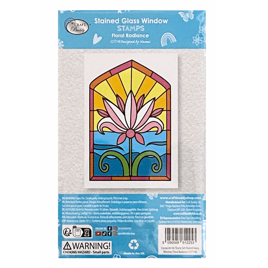 Our well-loved crafter Naomi Hanlon, together with Craft Buddy, have created a wonderful range of polymer stamps to give you a base for your creativity! A traditional flower motif has been given the ‘stained glass’ treatment’ to display a bold and ornate window image for you to add to your crafting projects. Whether you keep it simple by just stamping and colouring, or experiment with clear acetate paper for a ’Suncatcher’, style project, you can use this versatile image over and over. This large A6 stamp has been designed with a thick borderline, so you can recreate the glory of a colourful glass window. However you use your stamp, the possibilities are endless!