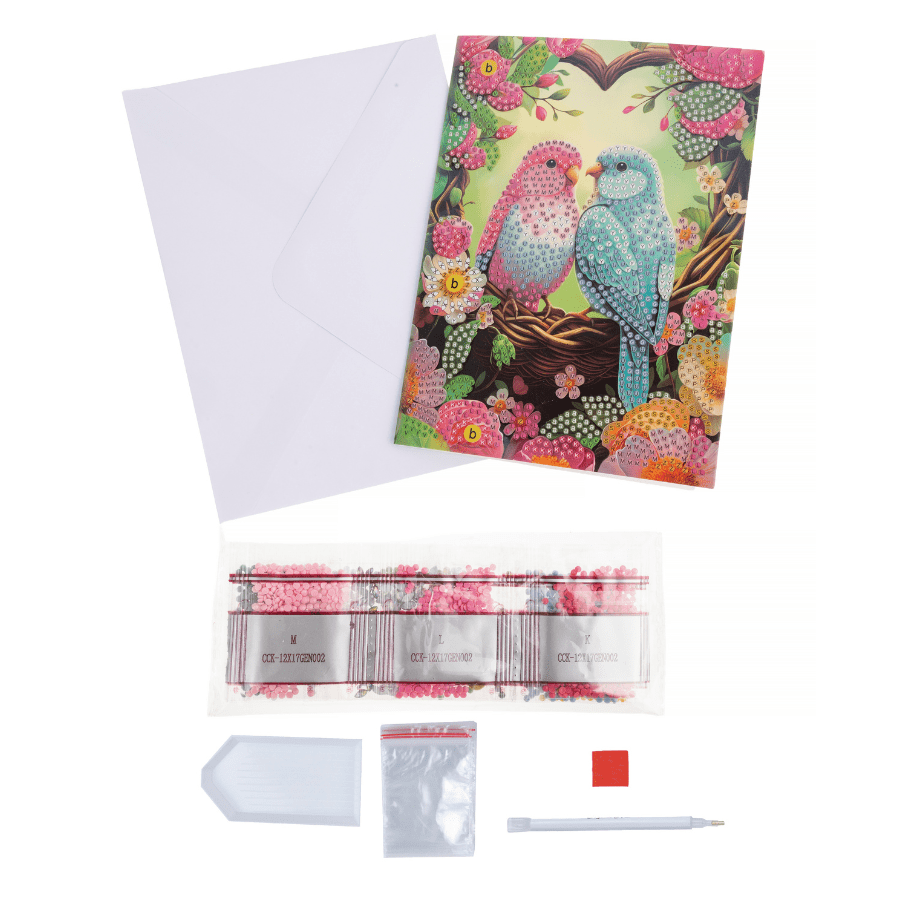 The Craft Buddy ‘Floral Birds’ Crystal Art® Card is a beautiful way to send a heartfelt greeting to a happy couple. Featuring a pair of pastel lovebirds set against a colourful heart design, this sparkling card is perfect for weddings, anniversaries, or any loving occasion. Measuring 5" x 7", the card comes with a high-quality white envelope and is blank inside for your own message.