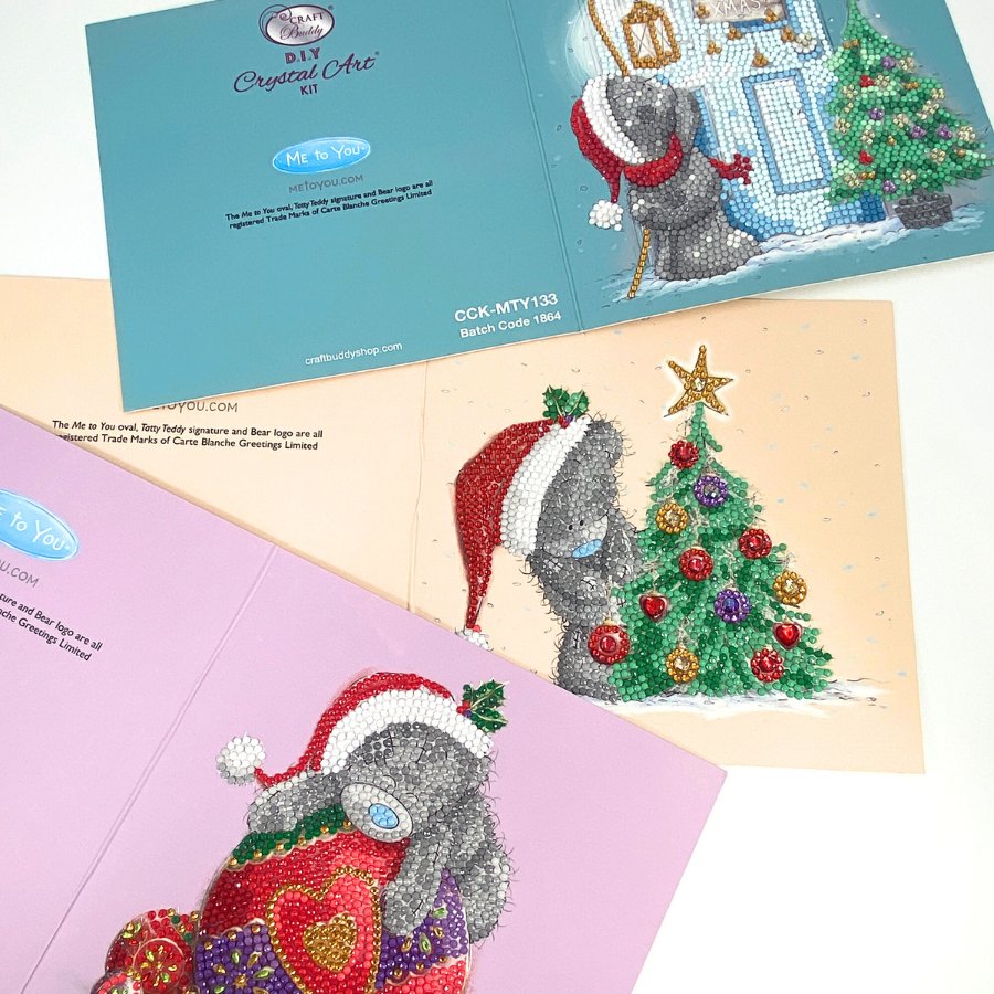 Our cute little friend ‘Tatty Teddy’ has come home for the holidays - will you let him in to do some Christmas crafting with the family? This heart-warming 18cm square greeting card shows the cute grey teddy holding a lantern at a frosty front door. The ‘Me to You’ Crystal Art® Card Kit from Craft Buddy includes all you need to create a dazzling Diamond Painting card that will stand out from the rest, and would bring a smile to anyone who receives it.