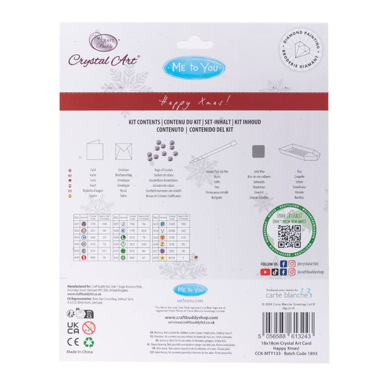 This is officially licensed by the Carte Blanche Group is so easy to complete. Simply follow the numbered dots and place each crystal on the corresponding spot, with all the tools included. Whether you are a beginner or experienced crystal art painting fan, this enjoyable kit will give ensure you have an extra-cute and very 'Happy Xmas!'