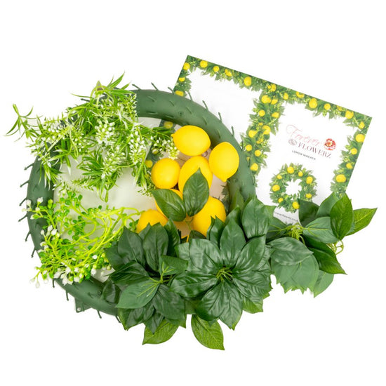 This beautiful bright and fresh wreath, is a gorgeous way to add some colour and decoration to your home this summer. With the Forever Flower wreath base, you can easily add any of your favourite Forever Flowerz varieties to the base. Foliage and lemons can be glued for a permanent fixture, or attached for interchangeable effects.