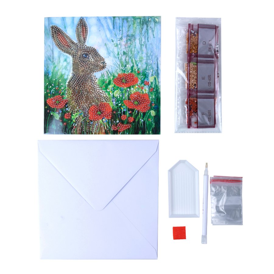 "Wild Poppies and the Hare" Crystal Art Card 18x18cm