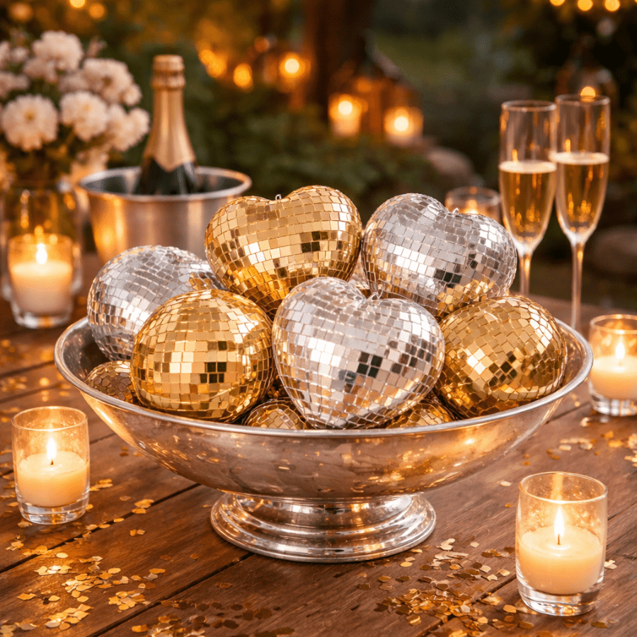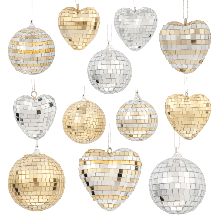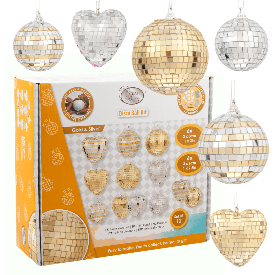 Disco Ball Kit Hanging Decoration Gold & Silver Set of 12