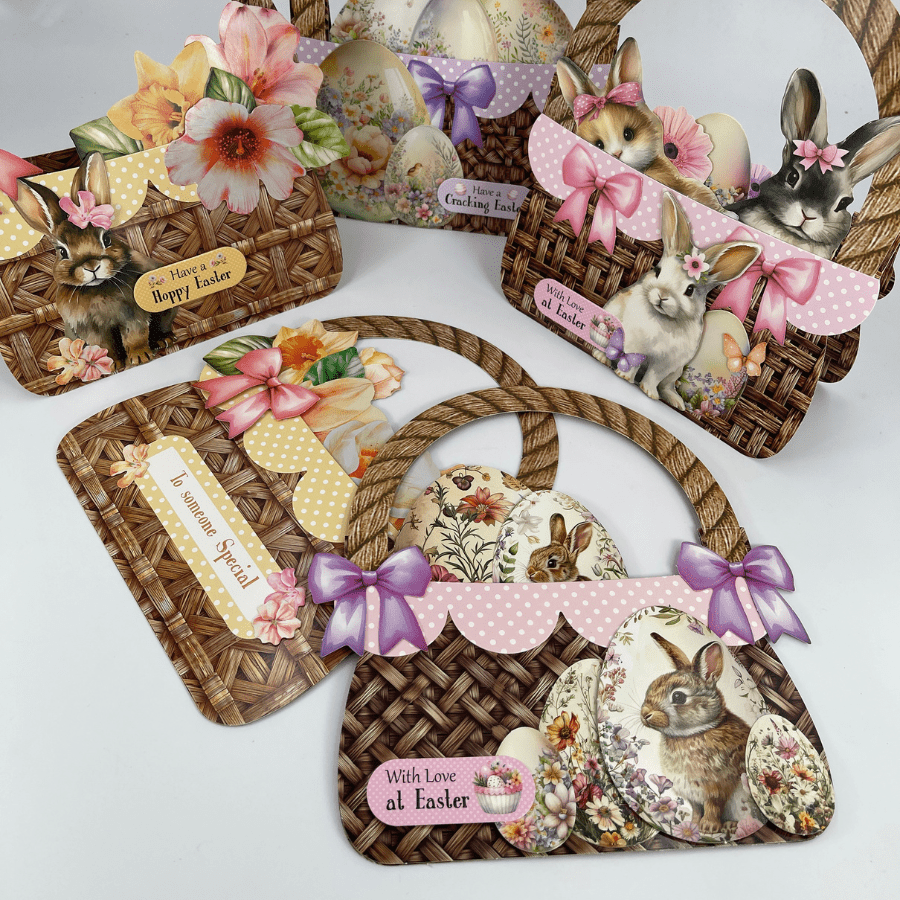 - 24 x Easter Basket 'Base' Greeting Card Sheets (12 designs, 2 of each)