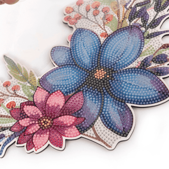 The ornate-edged MDF template is adhesive, so all you need to do is peel back the film and start adding crystals in the corresponding coded spaces. It is a 'full' Crystal kit, which means all of the wreath is adorned with top-quality diamond painting, for maximum sparkle. With all the gems you need to complete the kit, as well as tools and instructions, this is the perfect project to make for your door this Summer!
