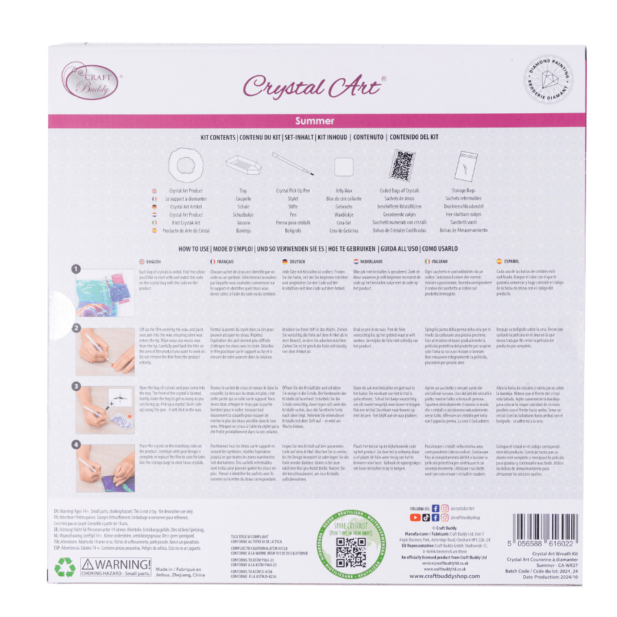 Any visitors to your home this Summer will not fail to be delighted with this sparkling door wreath. The pretty Craft Buddy 'Summer' Crystal Art® Wreath Kit will make any door sparkle when guests visit. It is full of bright flowers, petals and berries in every vivid colour you could imagine, to give a seasonal 'wow' factor!