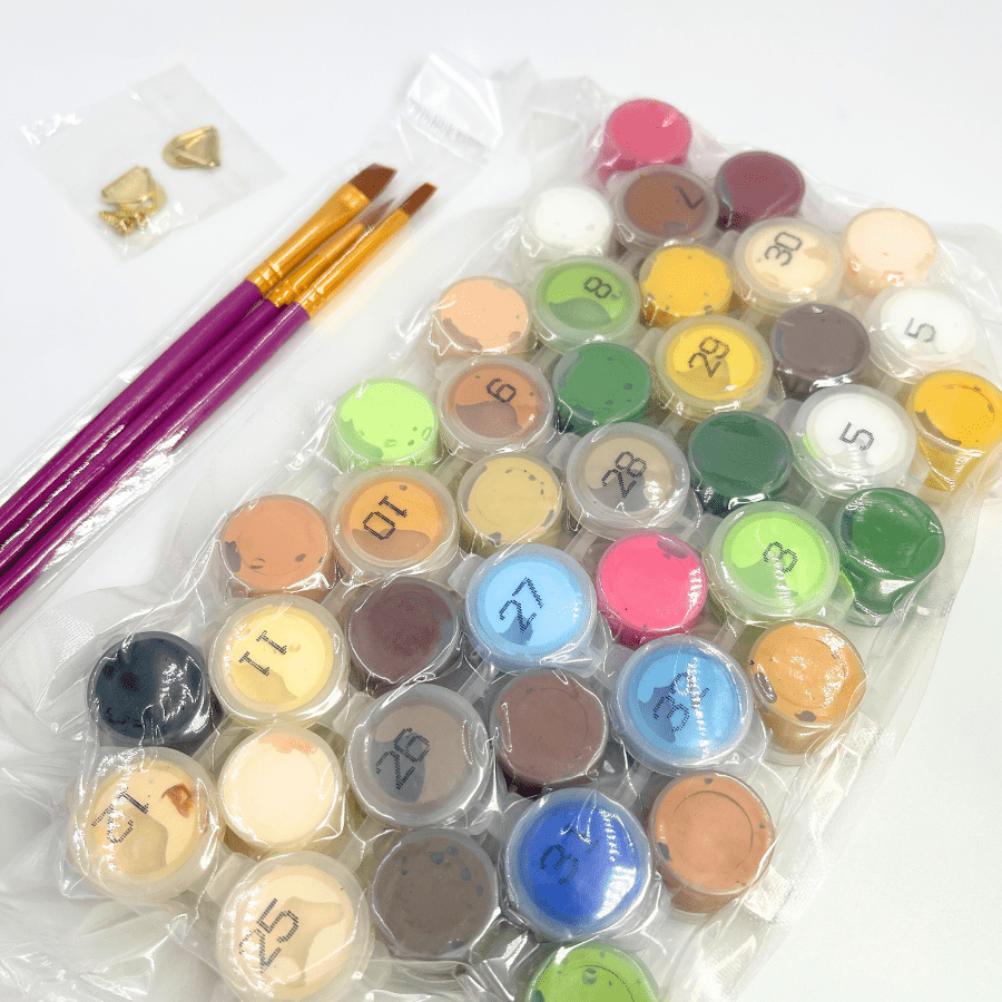 The cards are made from premium cardstock, ensuring durability and a professional look. The paint pots contain high-quality, non-toxic acrylic paints that are easy to apply and produce stunning results. Each kit comes with six cards to paint, 3 paintbrushes in various sizes, and an amazing 40 small paint pots! There are also 2 metal hooks in case you wanted to attach and frame your artwork. It's the ideal kit to take on your travels and enjoy with the family.