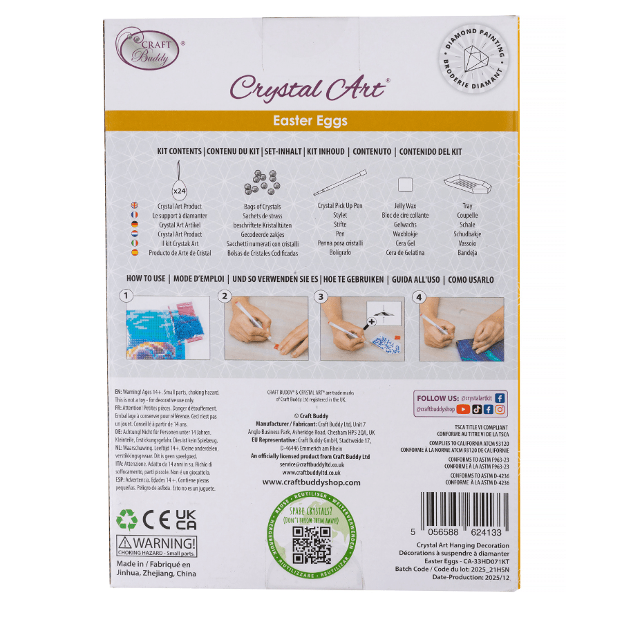 Every decoration is simple to make, with an easy peel-and-stick adhesive template to follow. Just lift the protective film, match the crystals to the symbols and press them into place using the included tools. However you choose to use them, these cheerful Easter designs add a joyful touch to your spring celebrations.