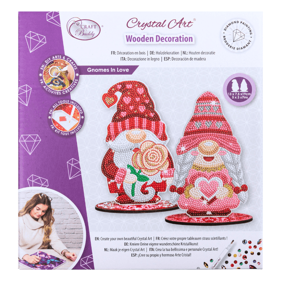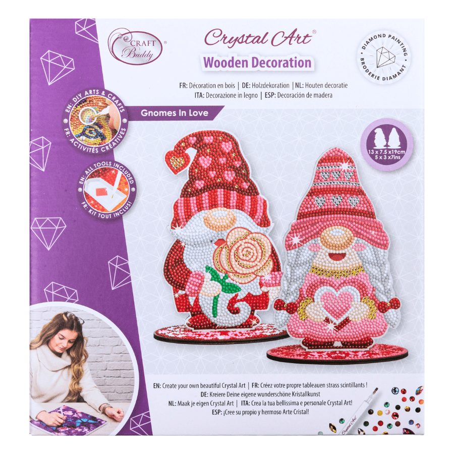 This loving pair are brought to you from Craft Buddy - and we really 'love' our Crystal Art®! The cute pair of gnomes can be adorned with sparkling diamond art, and be a perfect crafty kit for your other half, or for a Valentines project. In matching pink and red outfits this charming Mr & Mrs Gnome will add a touch of whimsical romance, wherever you place them. Why not create and use on a wedding display table for your favourite quirky couple?