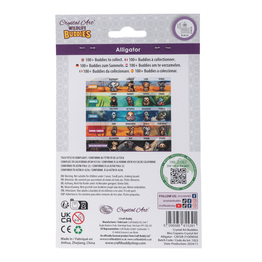 New for 2025, Craft Buddy brings you the collectable Crystal Art® Wildlife Buddies series. Featuring 20 original animal designs, each Crystal Creature has been given the diamond painting treatment, with fur, fins, tentacles and tails that will sparkle and shine. The new 'Series 5' range is made to be collected, whether you choose your favourite species or habitat. Why not go on a trek across wild deserts or swim the deep blue sea and collect the entire range!
