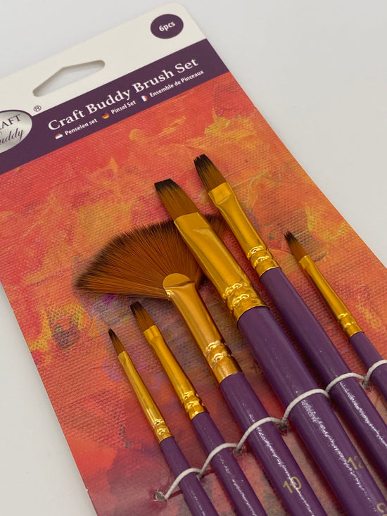This handy set of 6 brushes from Craft Buddy can be used for all sorts of crafts. From painting with watercolour, oil or acrylic paints, sealing Crystal Art, to fine detailing for embellishments. With a range of width and coverage, these brushes will cover it all!