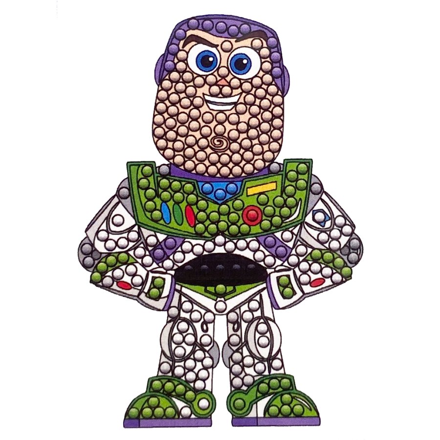 The stamped images contain small dots, perfectly sized to fit leftover Crystal Art® drills, self-adhesive gems, pearls or liquid drops and glitter glue. These enable you to create Crystal Art® images again and again! You can follow the colours of the character, with green and white for his suit, or get creative and give him a new look - it’s up to you!