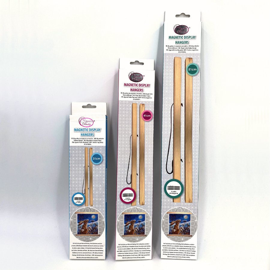 Craft Buddy brings you a unique and convenient display solution for your craft projects! The Crystal Art® magnetic display hangers are an ideal way to display your unmounted Crystal Art®, Diamond Painting and Paint By Numb3rs canvases and projects. You can use them to hang up your artwork, photos or poster collection too - the list is endless for this versatile accessory. Just choose your size, with your project in mind, and display your artwork in your home for everyone to enjoy!