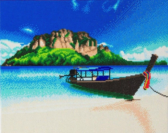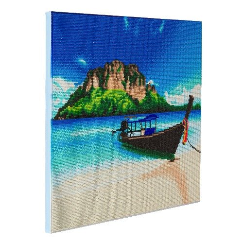 Escape to paradise with our 'Tropical Beach Boat' Framed Crystal Art Kit. Sized at 40x50cm, this mesmerizing project lets you create a masterpiece that captures the serenity of a tropical beach with a boat in sparkling, vivid detail. Bring a piece of paradise to your decor.