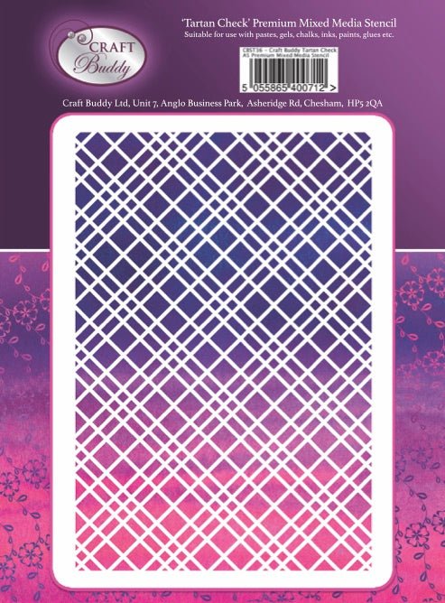 Craft Buddy Tartan Check Stencil A5 Premium Mixed Media Stencil