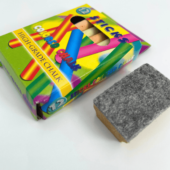 - 12 x Coloured chalk sticks (of 5 pastel colours - white is not included)
