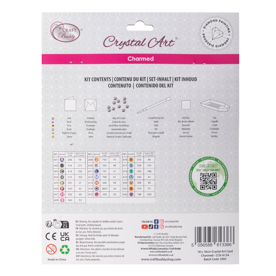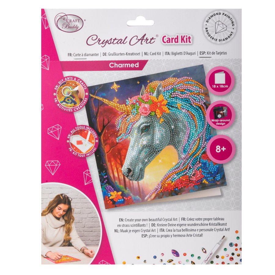 The world of fantasy and mystical art is no better captured than with Crystal Art®. With this vivid card, it truly is a piece of art in itself. The Craft Buddy 'Charmed' Crystal Art® Card Kit features a magical unicorn, with rainbow mane and ornate flower decoration. The background of the deep coloured forest 'wraps around' to the back of the card, making this greeting something really special, and perfect for Autumn, Halloween, or a fan of fantasy art.