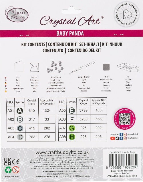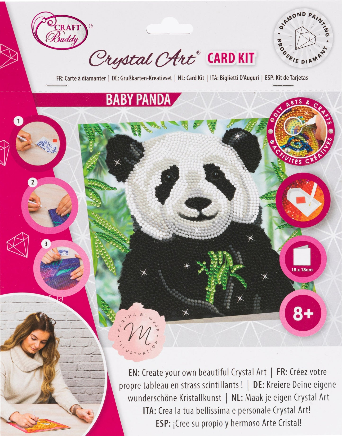 - Celebrate the cuteness of pandas with our "Baby Panda" Crystal Art Card! This adorable 18cm x 18cm card features a baby panda chewing on a bamboo stick in its natural habitat. Bring this charming scene to life with our crystal art kit, which includes everything you need to create a sparkling masterpiece.
