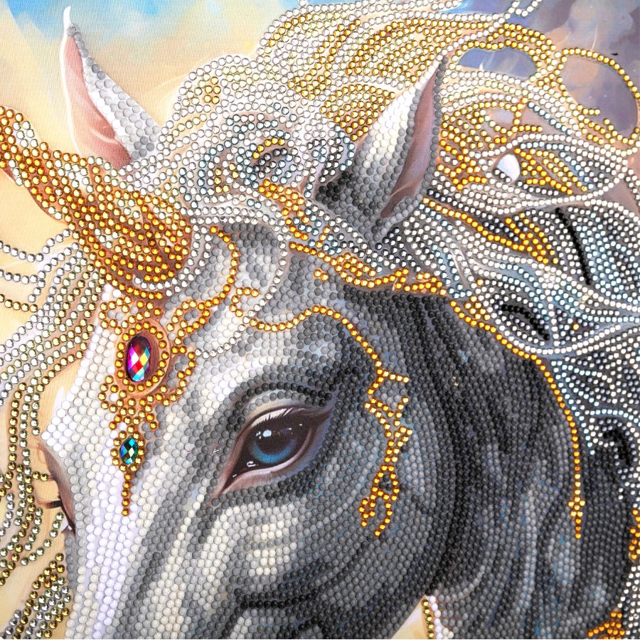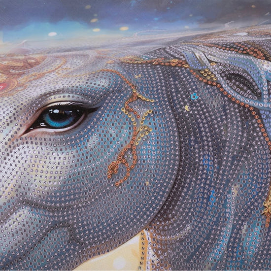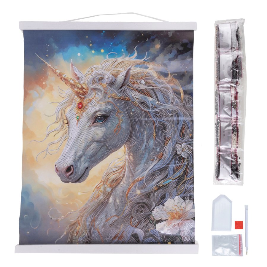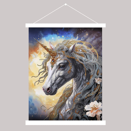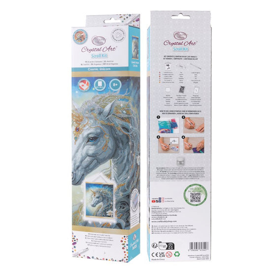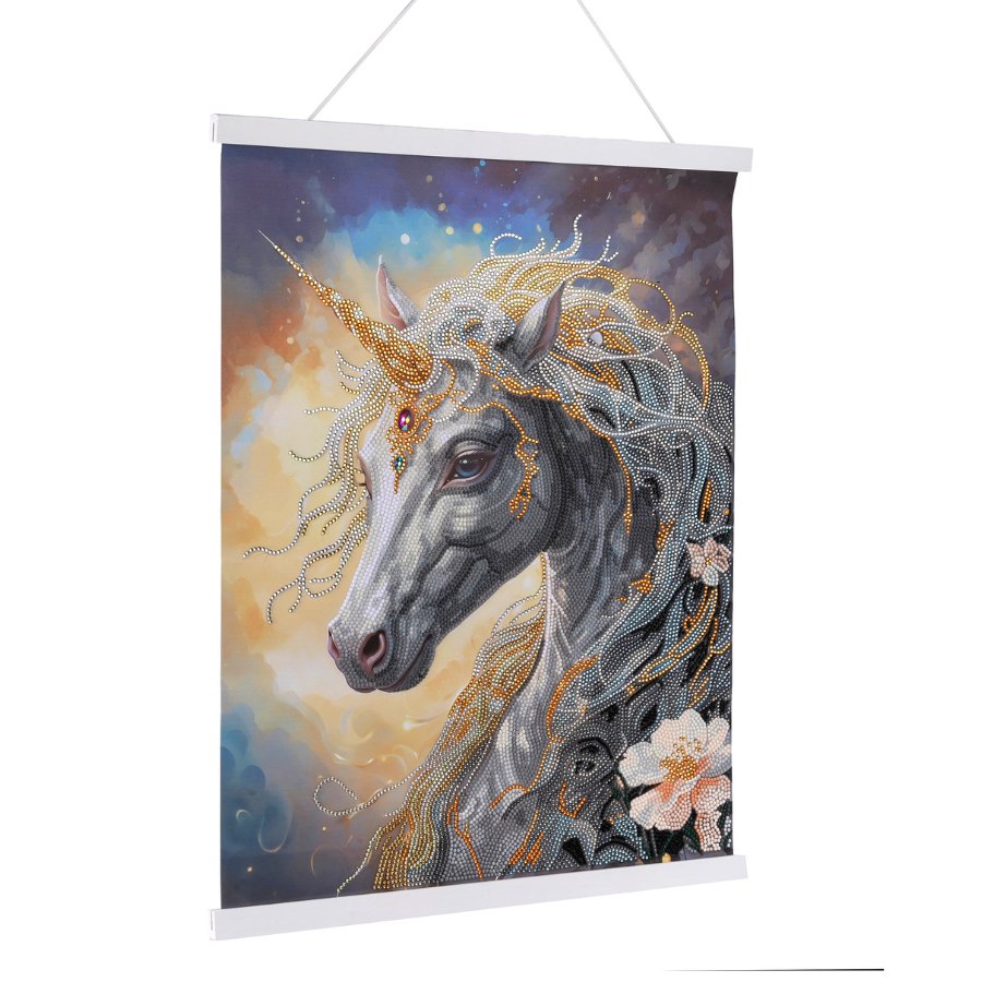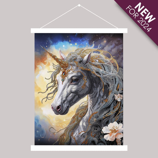 One of the most legendary fantasy creatures is the Unicorn, signifying purity, innocence and power in ancient mythology. Here, Craft Buddy brings you an amazing Crystal Art® Scroll Kit, depicting a sparkling example of softness, yet strength. The 'Cosmic Unicorn' is decorated in flowers, with a cascading 'Crystal Art®' mane for you to craft. This beautiful kit is perfect for all fans of fantasy art, with the illustration shown 'edge-to-edge, meaning there are lots of coloured sections to fill in with your diamond art. It is a 'partial' design, where the sky and certain details are left plain, giving texture and contrast.