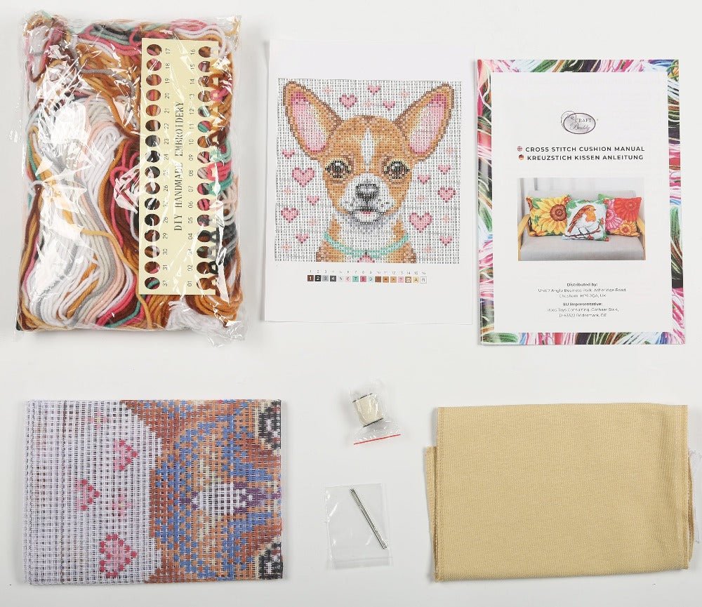 These cushion kits contain everything you need to create and hand stitched, beautiful pattern, that you can sew into a cushion with the materials provided. You do not need any former experience with cross stitch or embroidery. You will be taken through, step by step, how to form a ‘half stitch’ and your pattern is pre printed, making it easy to follow and build your image.