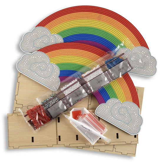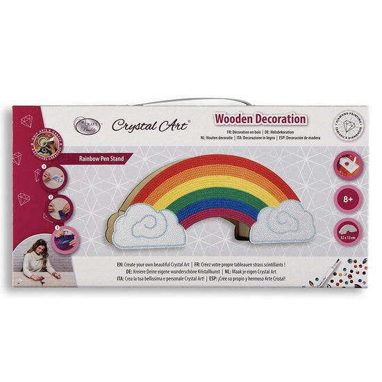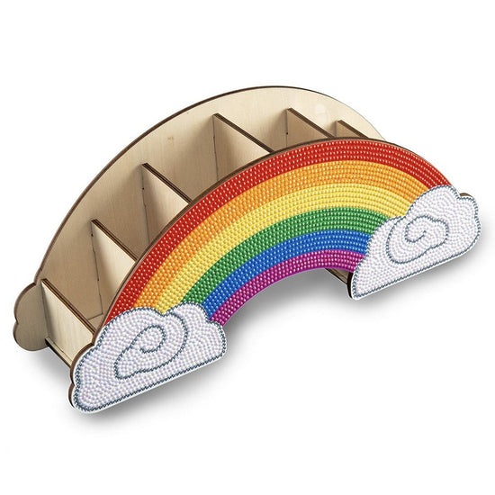 This bright and colourful pen stand is the perfect addition to brighten up any desk and craft table! With a simple slot together construction, you have the enjoyment of embellishing the rainbow Crystal Art templates and having a functional stand once complete! The wooden base can also be painted and decorated for a more bespoke finish.