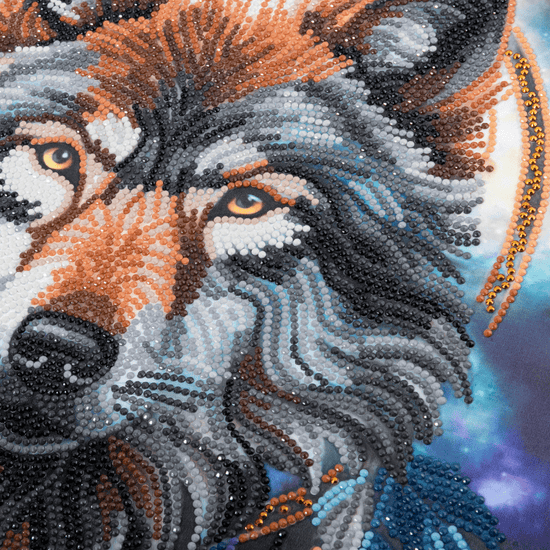 This striking wolf has been given the spiritual treatment thanks to Craft Buddy. The 'Enchanted Wolf' Crystal Art® Scroll Kit comes in rick dark tones, that capture the mystical night sky, and allows this dramatic creature to stand out and 'sparkle'! This is a 'partial crystal' scroll, which means the background is left plain without gems, so the main image will feature!