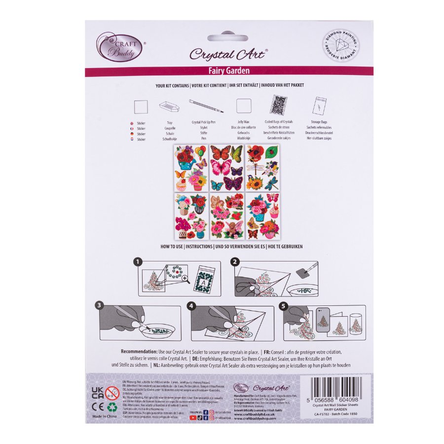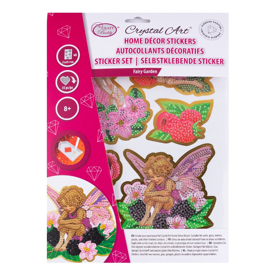 Applying these stickers is so easy - just follow the easy-to-match template to see which crystal goes where, peel off the backing, and stick to anything you like - laptops, notebooks, windows - the list is endless! All the tools you need are in the kit as well as a rainbow of glimmering crystals. The Craft Buddy Crystal Art® 'Fairy Garden' Sticker sheets give so much value for money, and joy to any crafter!