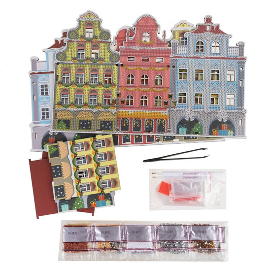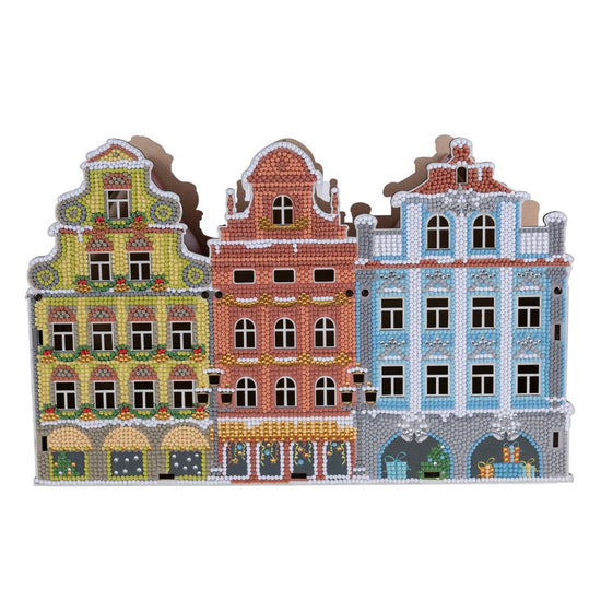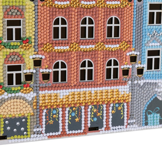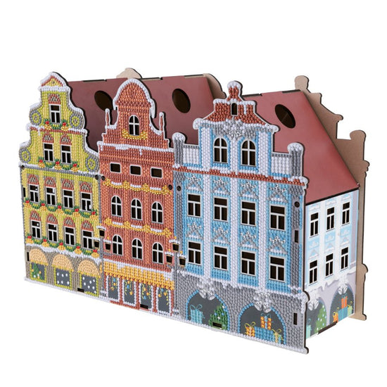 Introducing our Crystal Art ‘Festive’ Treat Holder, the finest sparkling shopfront display to make any Christmas treat table special. This DIY MDF Craft Kit gives you all you need to adorn a beautiful row of three nostalgic snow-trimmed Victorian buildings. With an ornate roof silhouette, this kit would look amazing on the mantlepiece, ready to dip in and indulge with delicious fudge or rich chocolate, whenever the mood takes you.