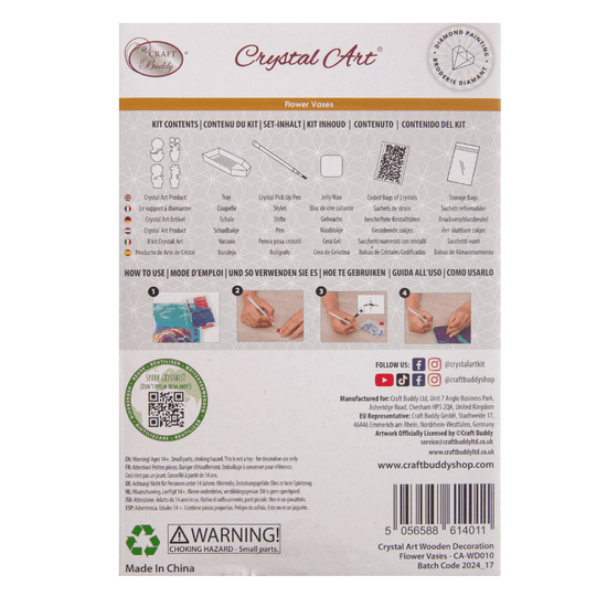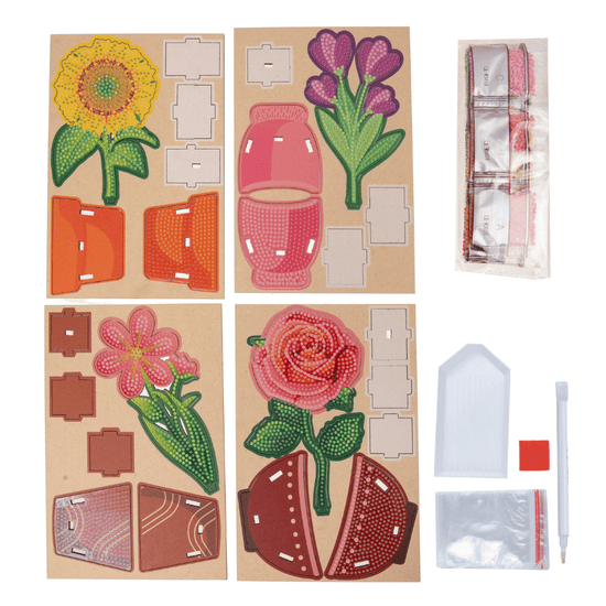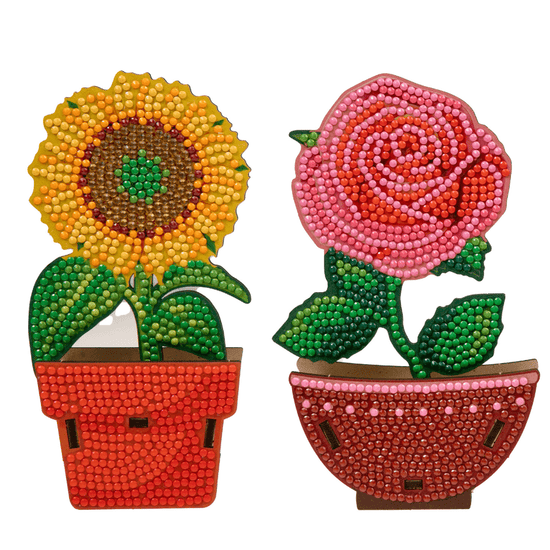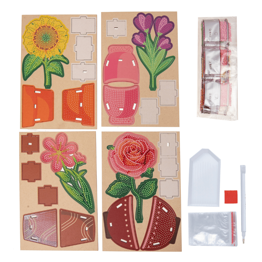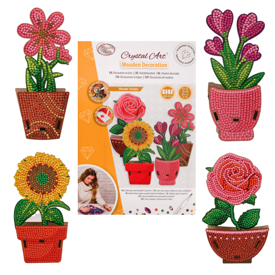 Bring the bling into Spring, with the Crystal Art® Set Of 4 Floral Vase Kits. This colourful collection of 'mini-kits'allows you to create a selection of seasonal flowers, all presented in their own diamond art vases! Choose from Sunflower, Rose, Daisy and Crocus, and create a DIY fun project a day, until you have a line up of dazzling blooms that would enhance any window or table.