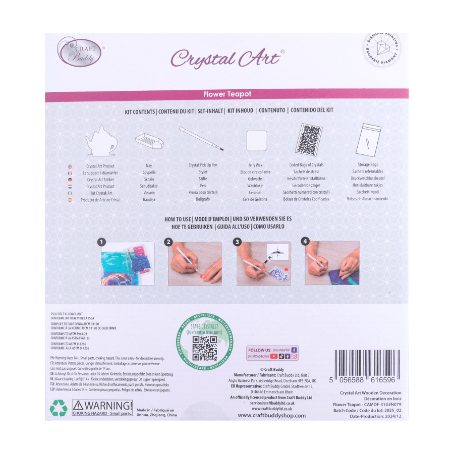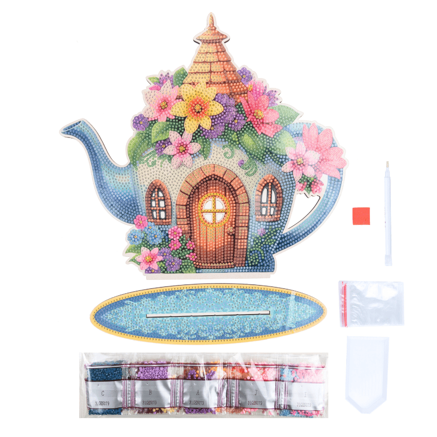 The adhesive teapot template comes with a numbered guide, so all you have to do is pick up tool and start placing the coloured resin gems on the corresponding numbered dots. All tools and gems are included so it is easy to create for any age or level of diamond artist. Once you've completed the kit, you can place it proudly in your home or give as a beautiful Summertime gift to a crafter.