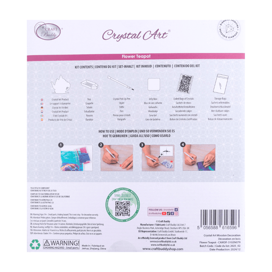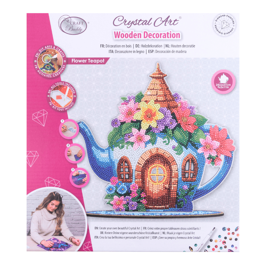 Add a touch of teatime whimsy to any home with the 'Flower Teapot' Crystal Art® Wooden Decoration Kit. With lots of colours of diamond gems to add, this MDF craft kit will add sparkle to any afternoon tea event as a table centre piece!