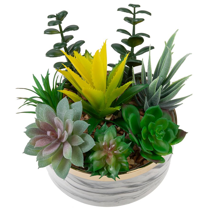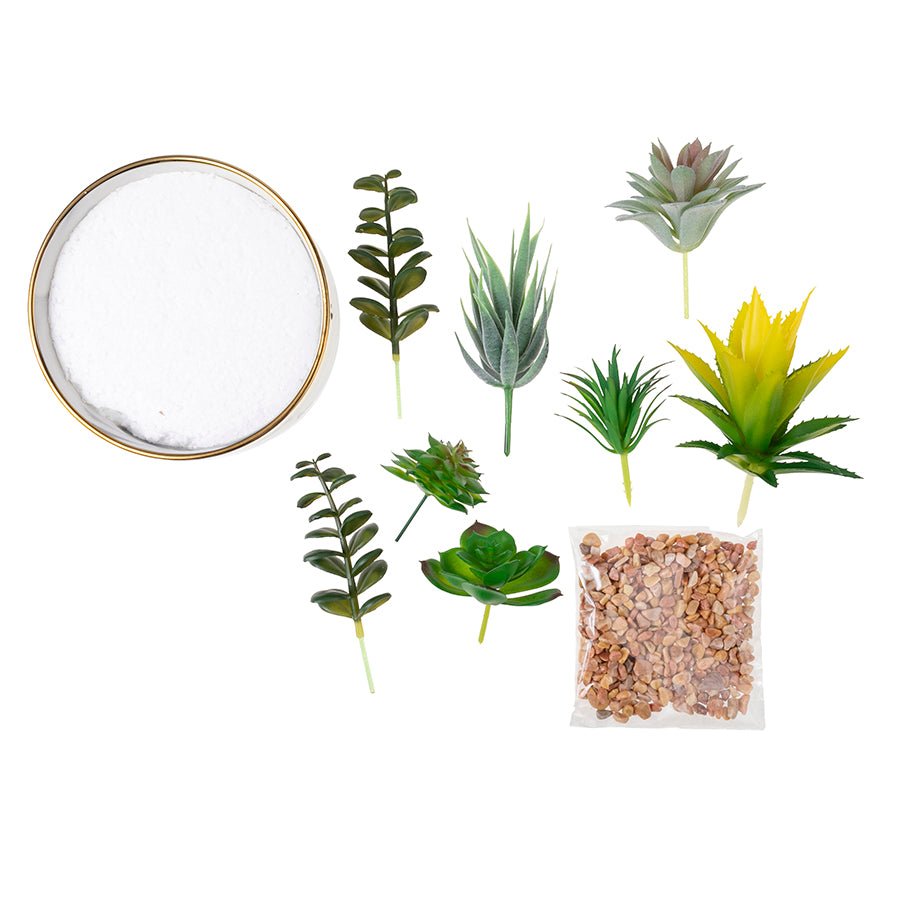 - 7x succulent varieties (8 artificial succulent plants with stems in total)