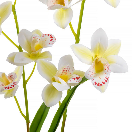 Cymbidium Orchids, more commonly known as Boat Orchids, are tall, bold and colourful. This beautiful set gives you everything you need, including the cement pot, to create a fully potted artificial plant, with 3 full bloom stems. Each stem holds 8 flower heads, making 24 in total, and they are simply constructed by layering your 3 petal shapes. The flower heads can also be used with the modular system of Forever Flowers, meaning they can be added to our wreaths and garlands as well as other accessories for different displays and arrangements. Makes 24x plants.