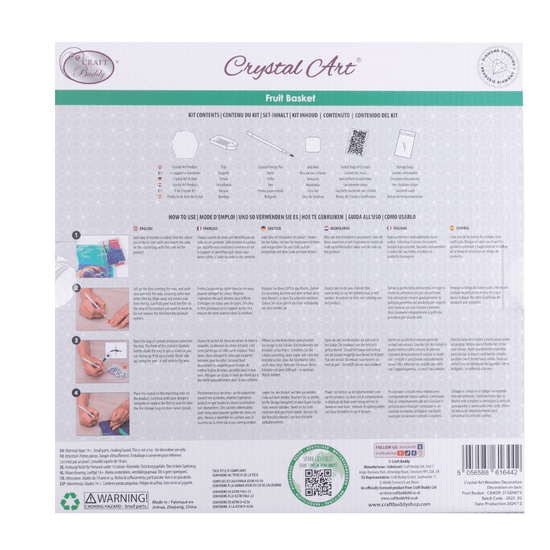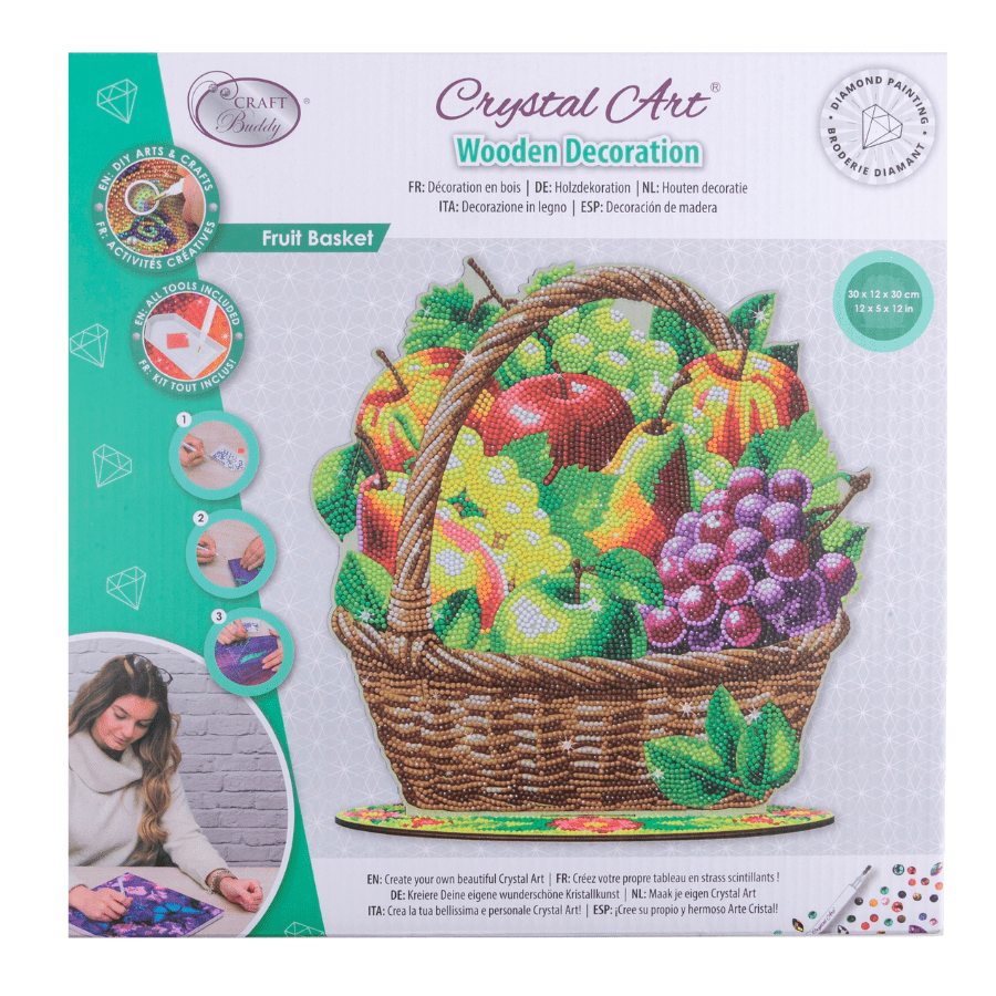 The 'Fruit Basket' Crystal Art® Wooden Decoration Kit is perfect to add colour and sparkle to any country kitchen. Coming in all the bright colours of nature, this MDF craft kit will add sparkle to any table or event as a shimmering centre piece! Take your rainbow gems and adorn the grapes, apples and pears and create a stunning piece of home decor.