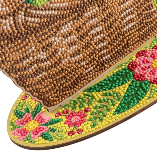 The adhesive basket template comes with a numbered guide, so all you have to do is pick up tool and start placing the coloured resin gems on the corresponding numbered dots. All tools and gems are included so it is easy to create for any age or level of diamond artist.
