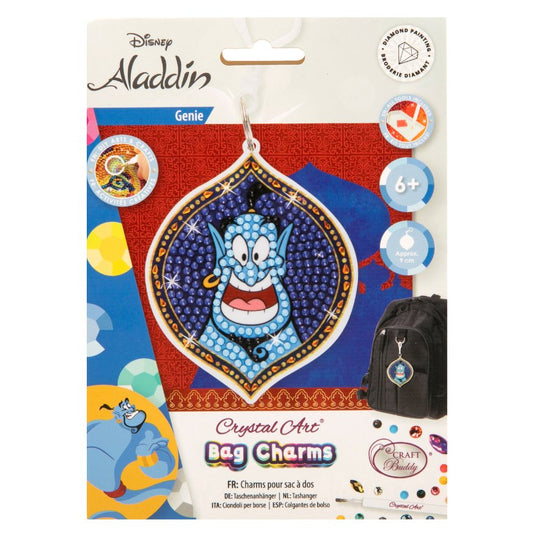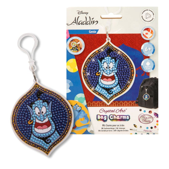 The enchanting tale of Aladdin is a magical one.... but it's the 'Genie' that will cast his spell on you! This bright and colourful Crystal Art® 'Genie' Bag Charm from the Disney animation movie of the same name is perfect to make your bag, satchel or rucksack stand out from the crowd. Take this on your travels by clipping this sparkling charm featuring the fun character, and you'll never lose your bag amongst others again. With an easy-to-clip keyring fastening, it will delight your day wherever you attach it to.